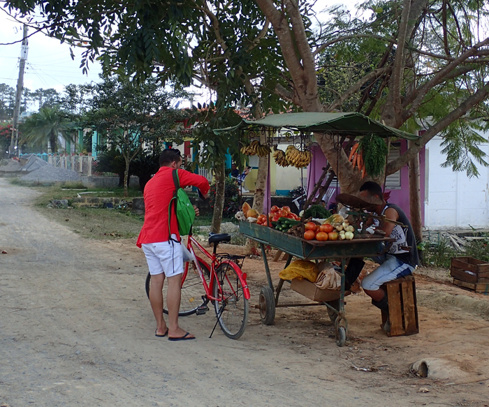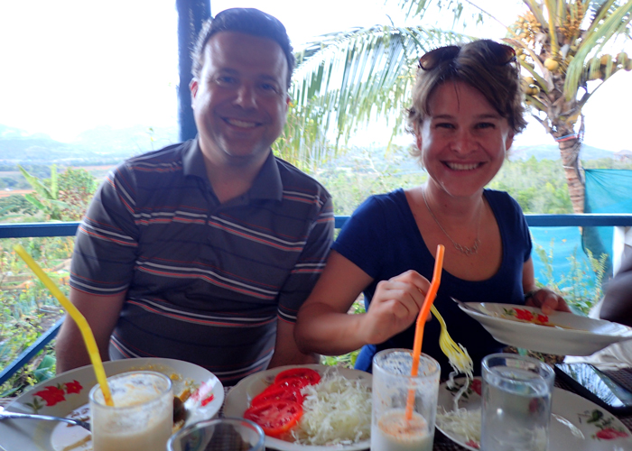 From the mural, we tried to visit a cave which wasn’t included on our itinerary, but the wait was too long, so we headed back to town for lunch at our home stays and then enjoyed a few hours of “rest” otherwise known as free-time to explore the town. We visited Viñales’ town square which is home to the only cathedral (and internet where a card could be purchased for $1.50 nearby), wandered off the beaten path a bit, and stopped at a craft market where I picked up a cigar cutter for the Habanos I’m bringing home for our Taste of Cuba party. Page picked up something, though I’m not sure what. I’ve lost track of her shopping addiction. I only know that she is a staunch supporter of the Cuban economy (and probably all economies where she visits)!