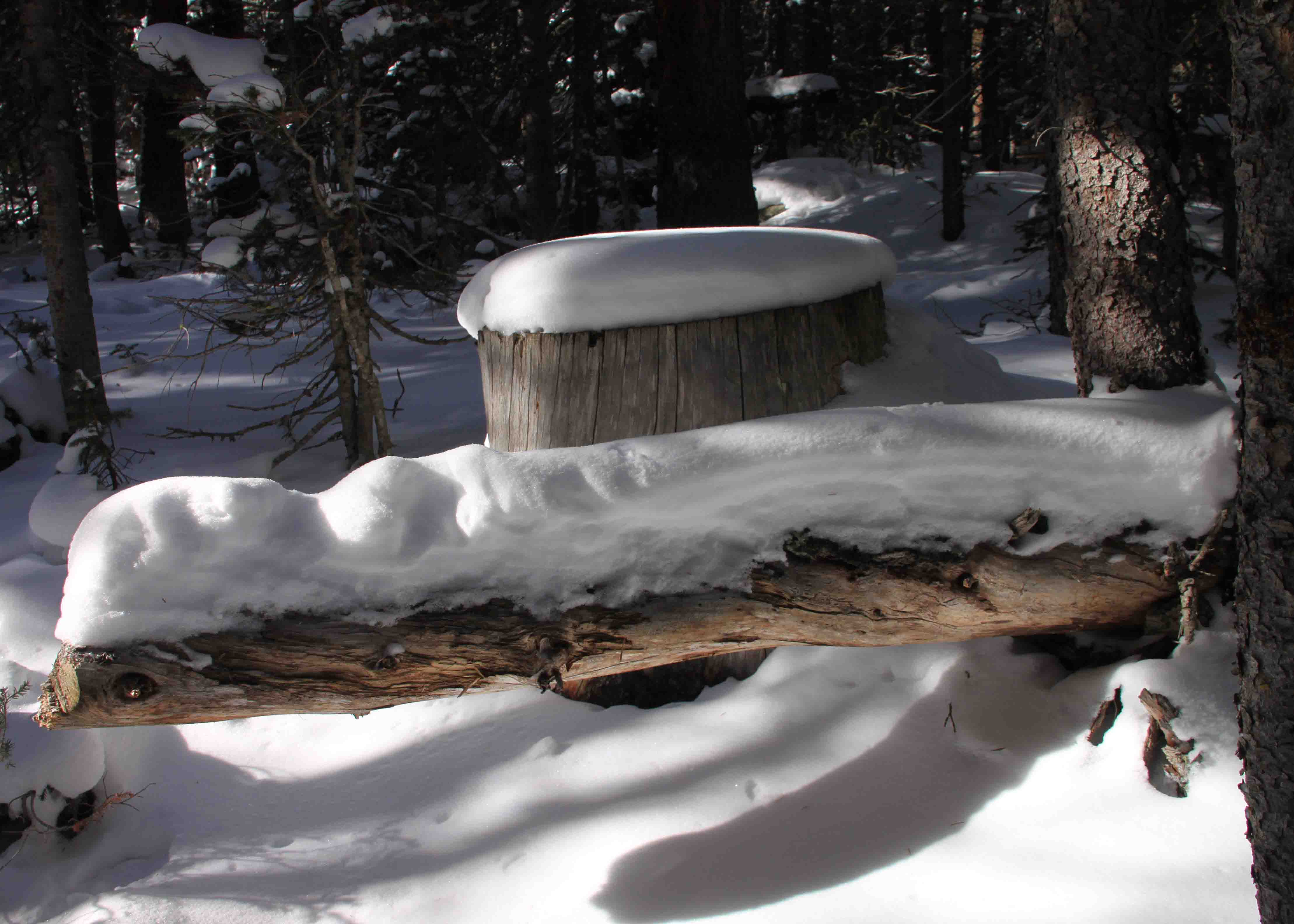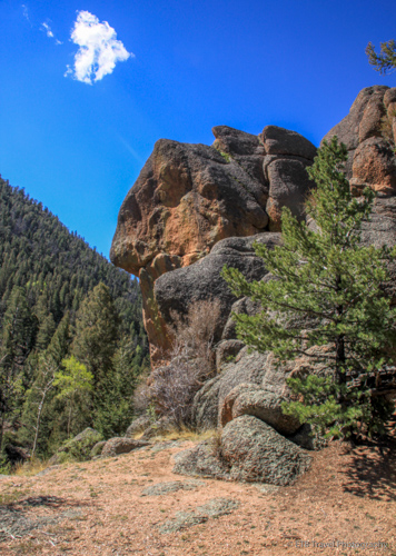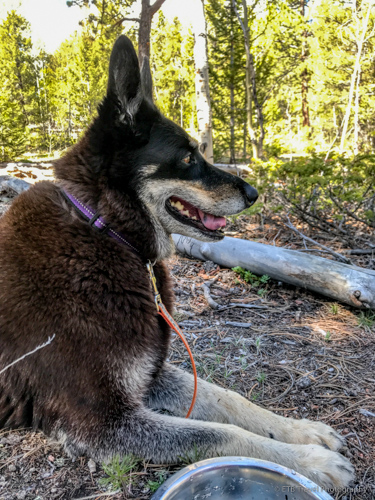 Sheena and I hiked the Shadow Pine Loop (very appropriately named) counter clockwise and slowly gained about 1,200 feet in elevation as we strolled through the shade of the lodge pole pine forest. The undulating dirt path seemed popular among the locals. Many runners and friends with dogs appeared to be out for their Sunday morning exercise as the woodpeckers attacked the trees and birds chirped overhead.